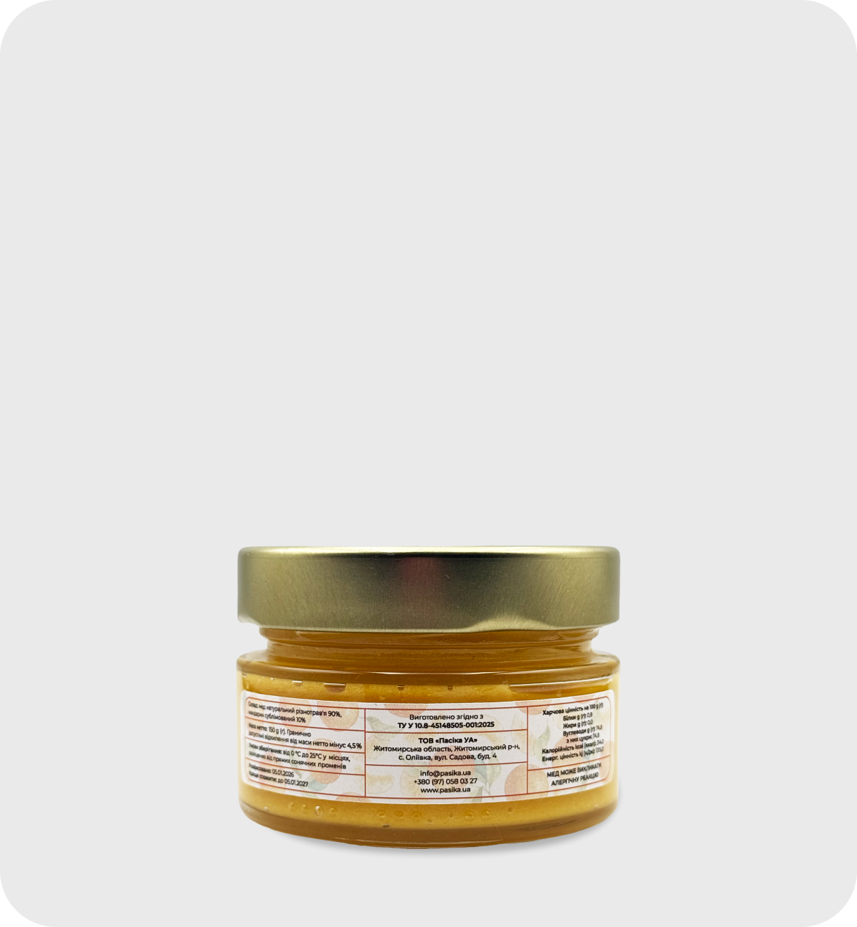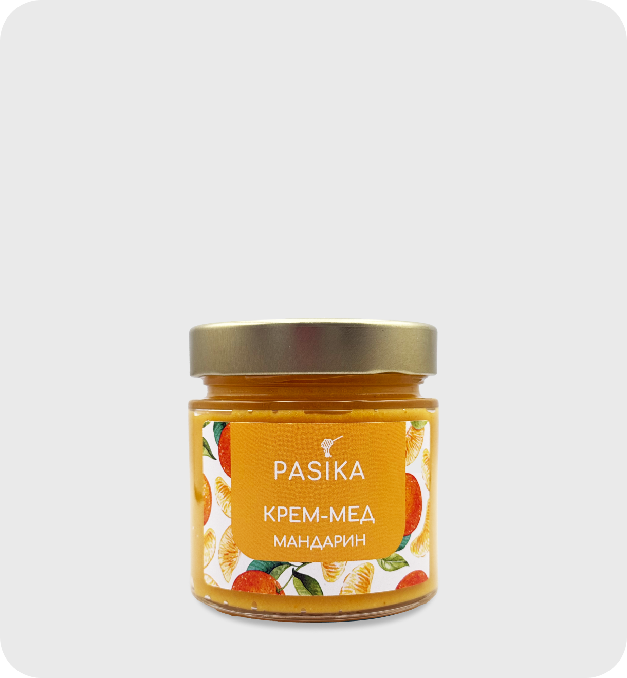 Мандарин — цитрус, який створює настрій. Він містить вітамін С, вітаміни групи В й антиоксиданти, які допомагають підтримувати імунітет у холодну пору та заряджають енергією. Крем мед із мандарином має м’який цитрусовий смак. Ідеальний до чаю, тостів, булочок і млинчиків