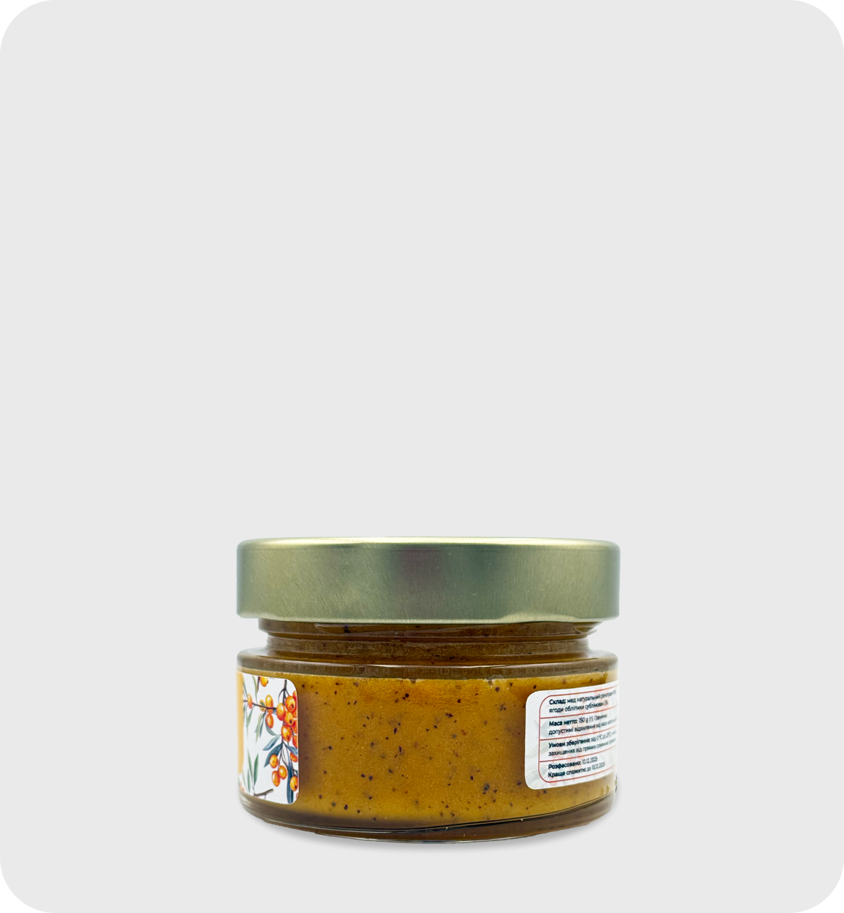 Обліпиха — масляниста, соковита ягода, що має характерний кисло-солодкий смак із ледь помітною терпкістю. Вона містить вітаміни С, А, Е та вітаміни групи В, тому чудово підтримує організм. У тандемі з крем-медом ягода не вирізняється різкою кислинкою, а тому пасуватиме не лише до теплого чаю, а й до млинчиків чи сирничків.