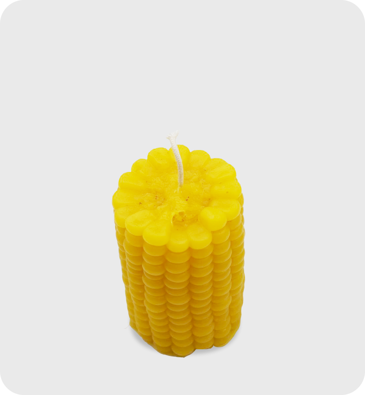 Свічка відтворює натуральну текстуру качана кукурудзи, а яскравий, чистий жовтий колір воску відповідає природному відтінку овоча.